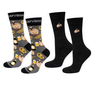 Men's colorful SOXO GOOD STUFF socks funny pale lager beer roasted in a can with polish inscriptions