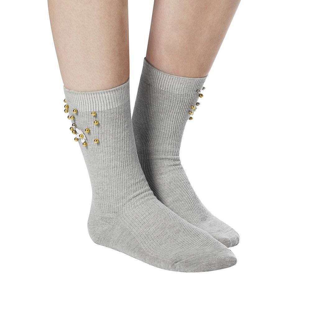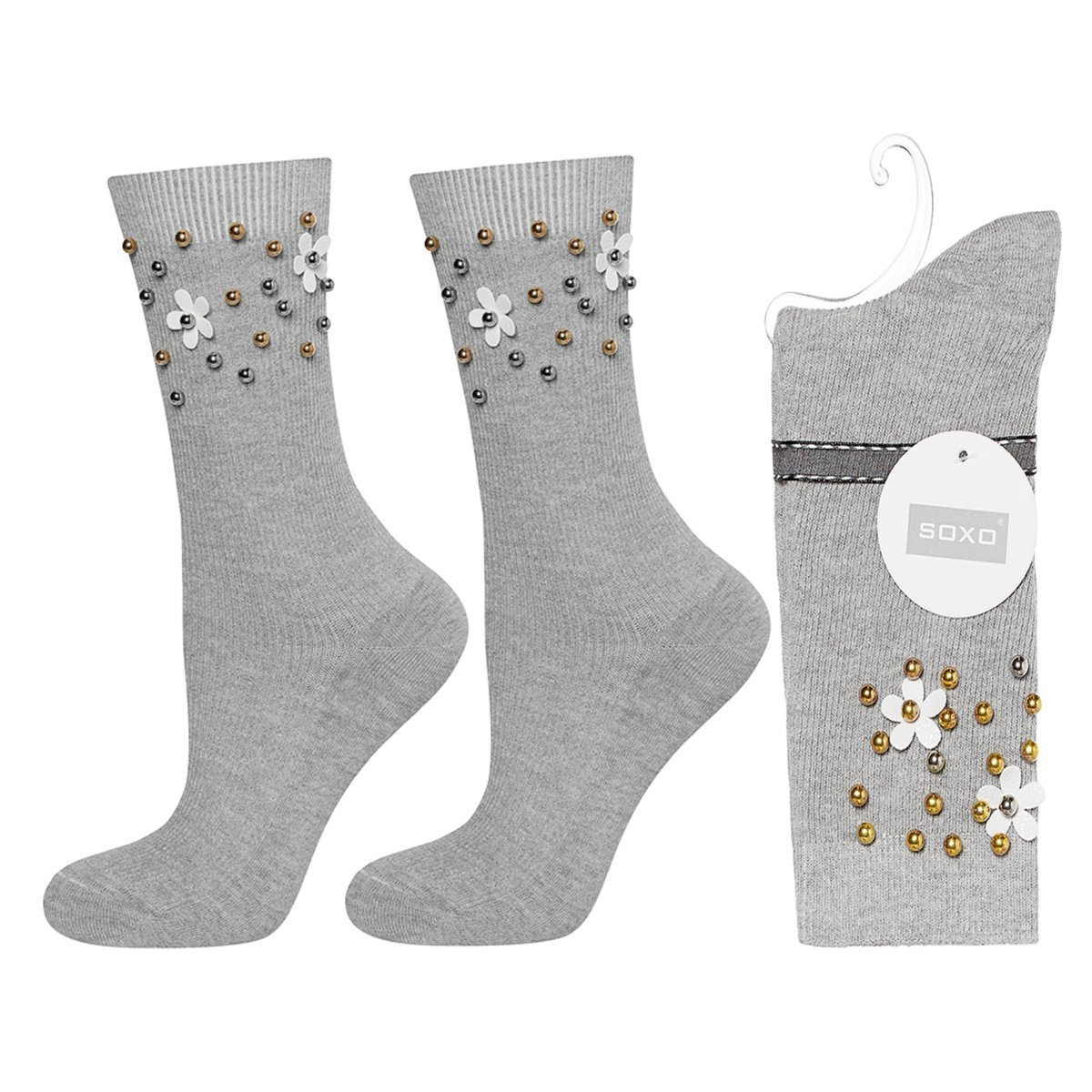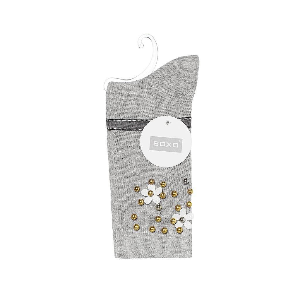 Gray women's SOXO classic cotton socks with pearls