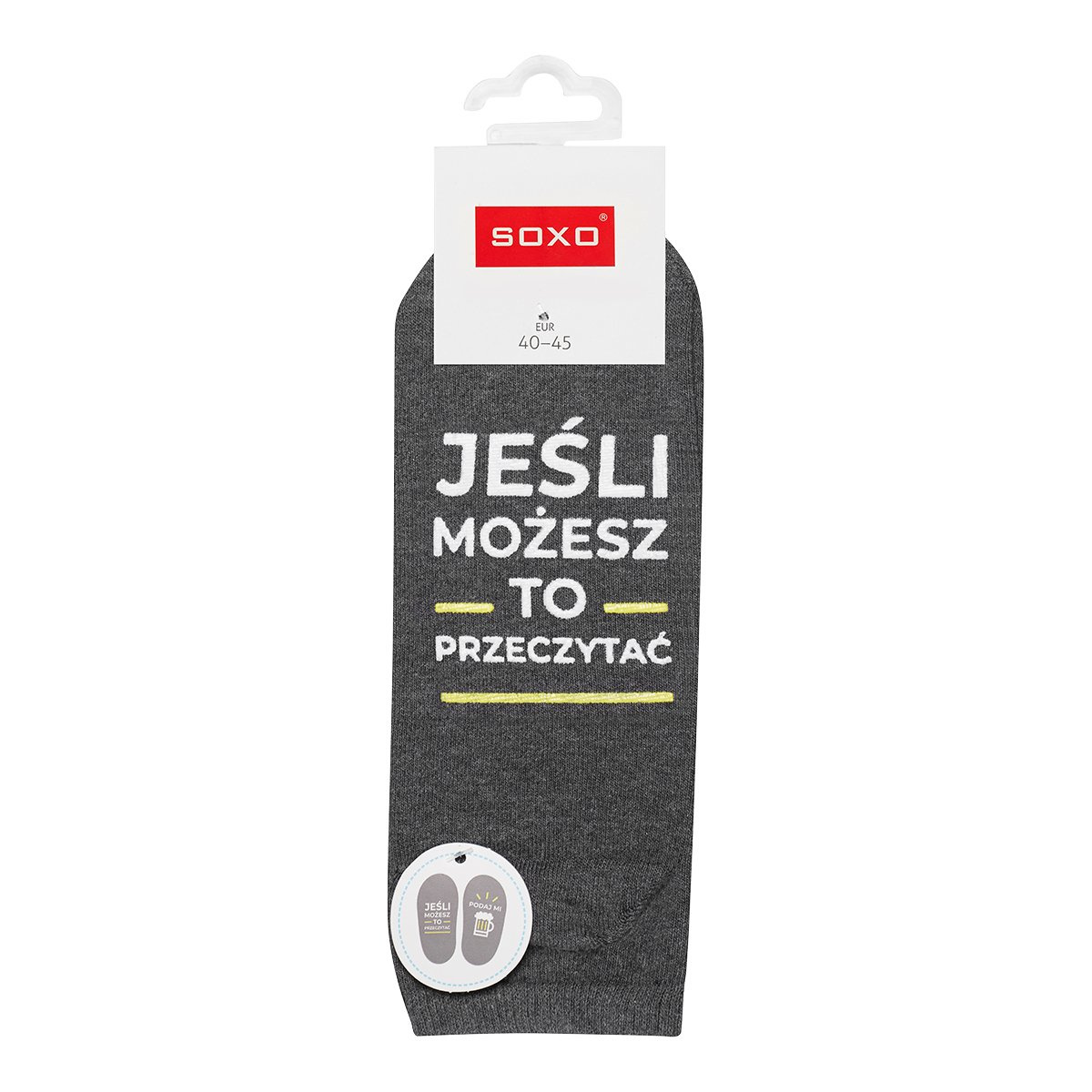 - Unusual SOXO socks with polish inscriptions will surprise many men with their uniqueness. Gray colors give them a unique character and style. Wear them to work, school or to a meeting! Fashionable, funny socks are a great gift idea for him!