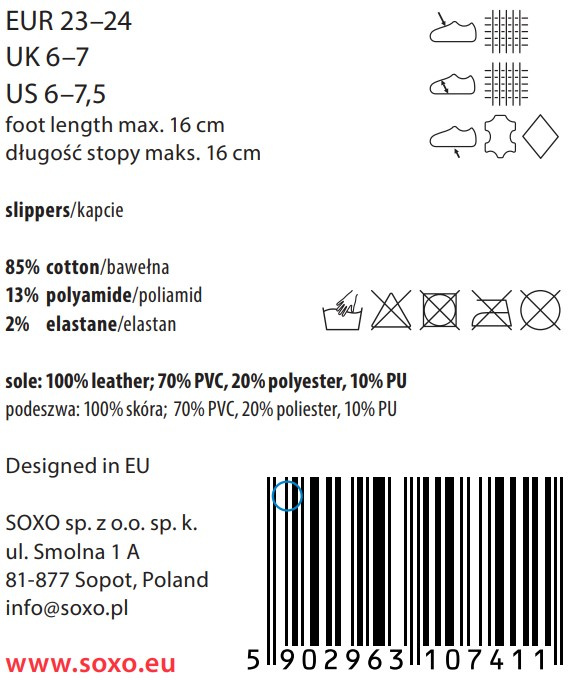 - The comfort and convenience of your feet are ensured by unique Soxo slippers.
