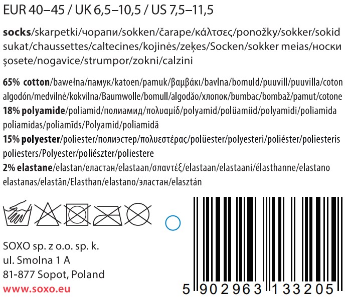- SOXO socks are a real treat. The socks are made of a soft-touch and stretchy, natural cotton fabric. SOXO socks are the perfect combination of pleasure and functionality that you will love from the first time you wear it!