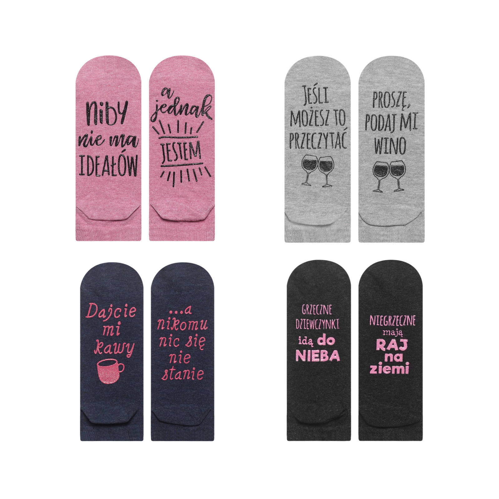 Set of 4x Colorful SOXO women's socks with funny Polish inscriptions
