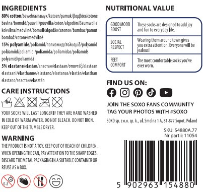 Canned pineapple? Who would have thought that a pair of funny socks could be packed in a metal package. At Soxo, we believe that laughter is the best remedy for boredom. Therefore, by wearing socks with a pineapple motif, you will brighten up your stylization and improve your mood. Colorful socks, that's it!