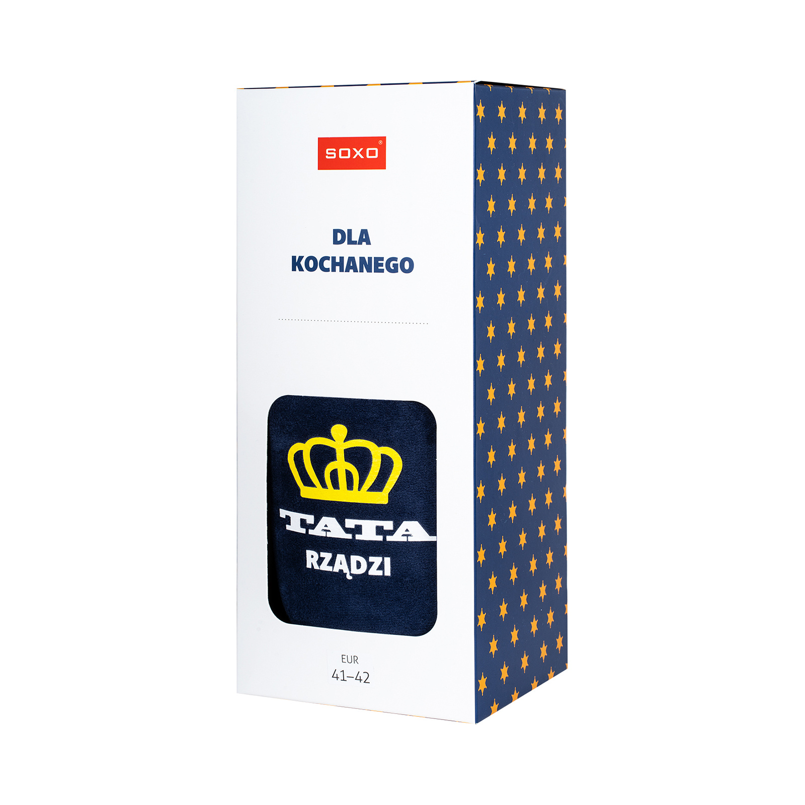 Funny SOXO slippers in a gift box are a great choice for a Father's Day gift! Such a practical and original gift will surely please your Dad, and the funny inscription "Tata Rządzi" will amuse him for the whole day!