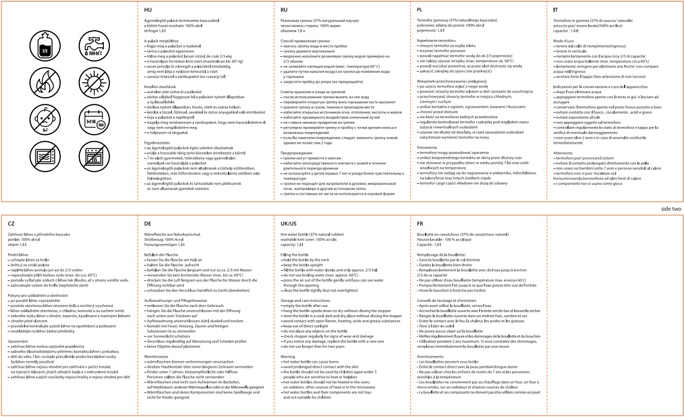- The hot water bottle with a sweater design will keep you warm on chilly autumn and winter evenings and beyond. The soft outer material wraps your body in pleasant warmth. High-quality material ensures comfort during use.