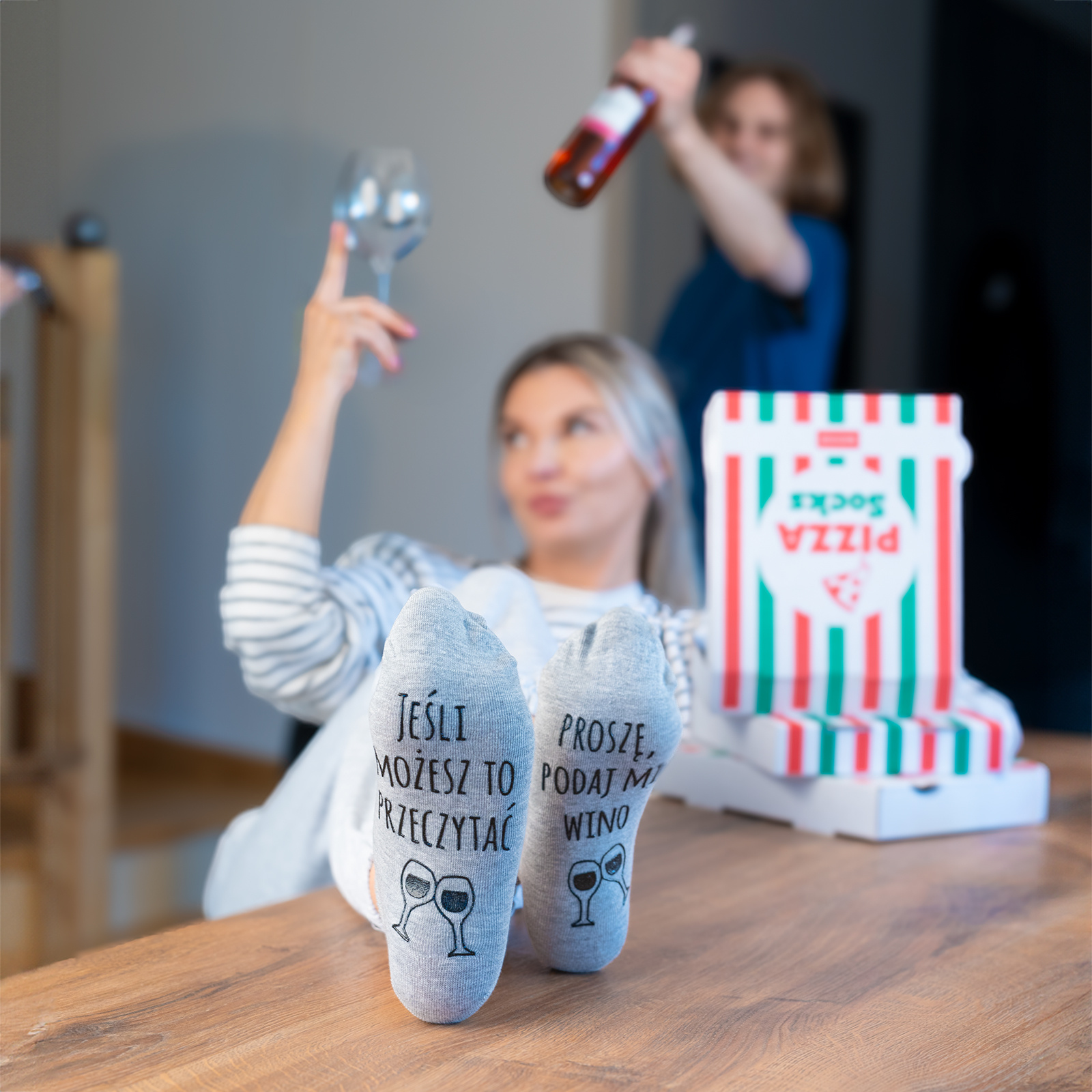 A set of socks with inscriptions is a fourfold joy! Happy and fun socks are a must have in your wardrobe. In our country, communication without words becomes more important. Who among you would not want to sit back in a comfortable armchair and get a glass of wine without using your voice? Socks If you can read this, please pass the wine to me, they will do it for you!