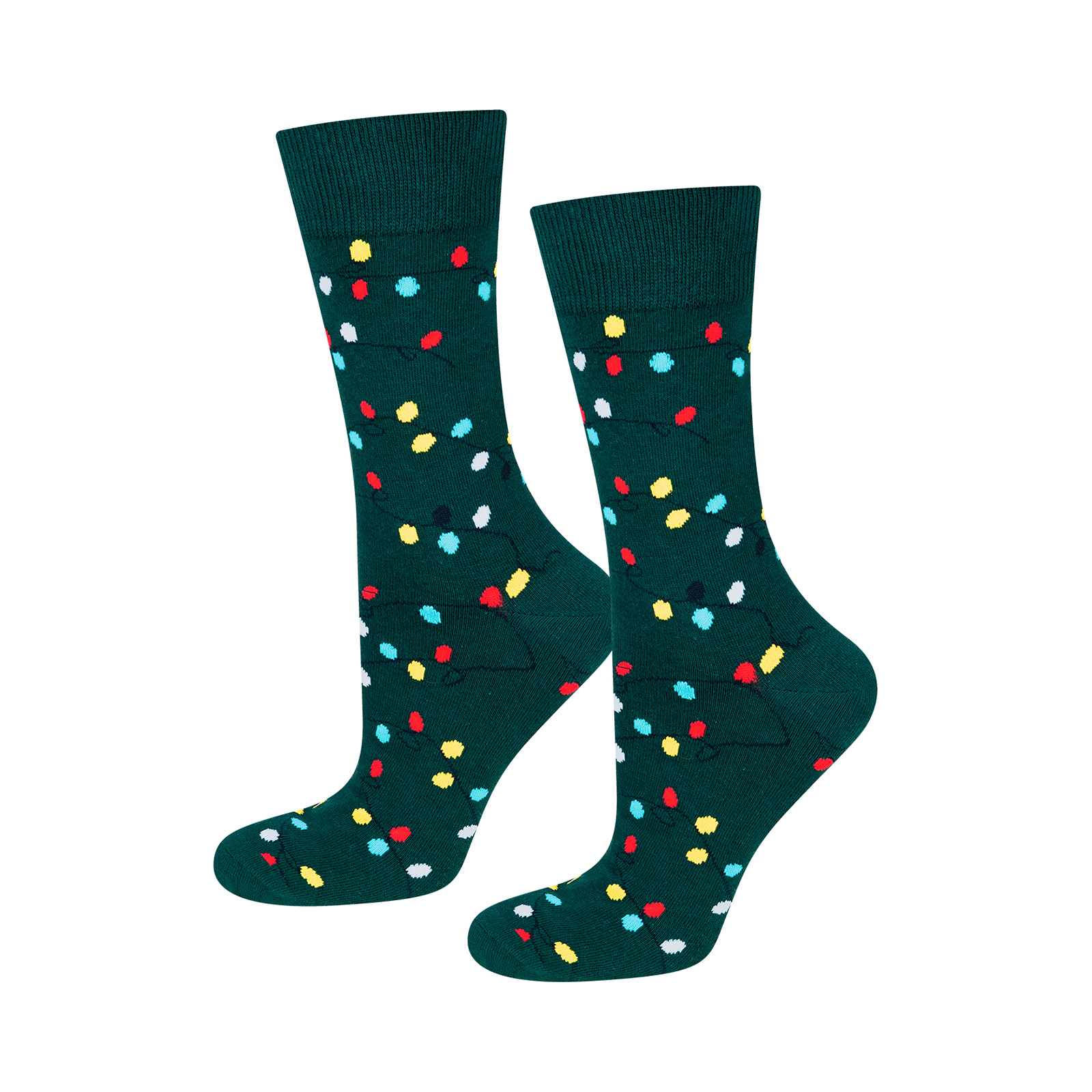 - Colorful socks are distinguished by Christmas patterns in: gingerbread cookies, Christmas lights, nutcrackers and sugar canes.