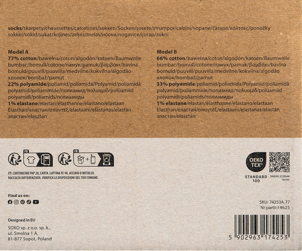 - Fashionable SOXO socks will surely please all men who like to wear colorful socks with fashionable, interesting patterns.