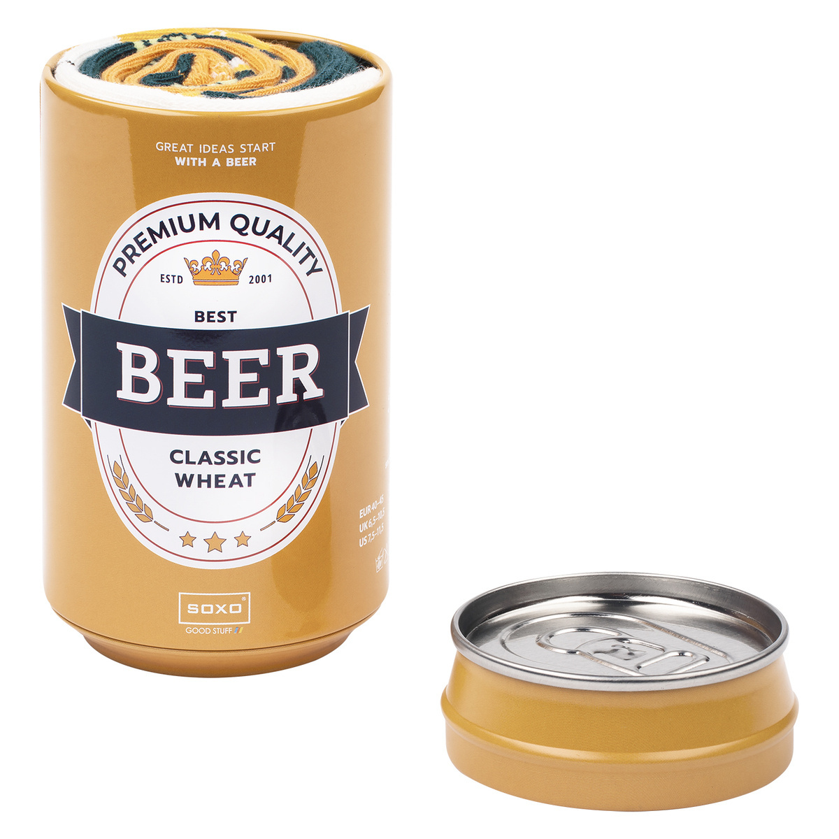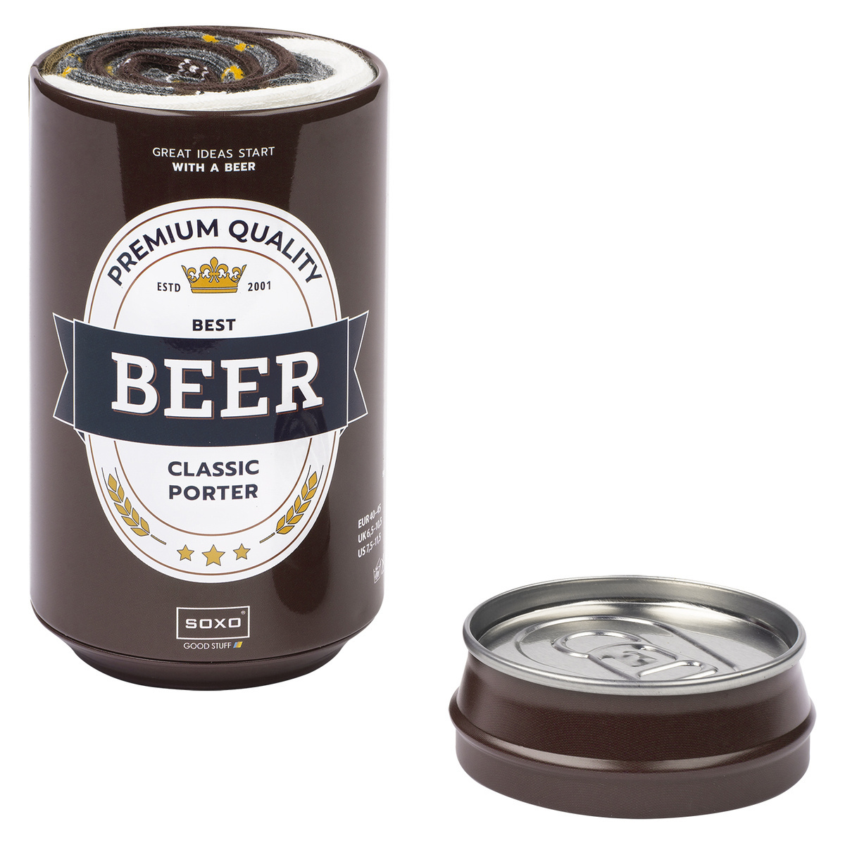 Set of 3x Colorful SOXO GOOD STUFF men's socks funny beer with inscriptions in a can for a gift