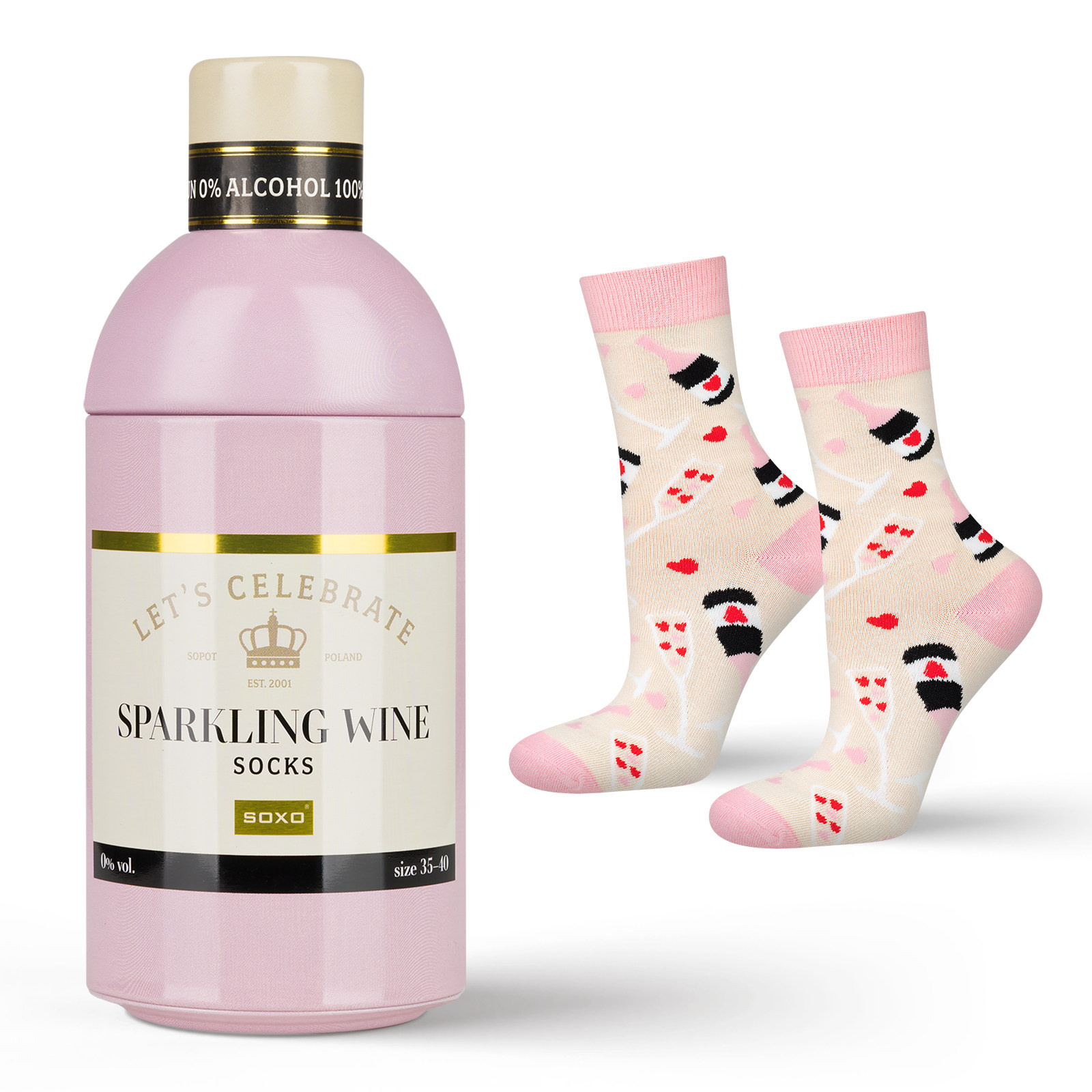 Women's SOXO GOOD STUFF socks with Sparkling Wine in a bottle