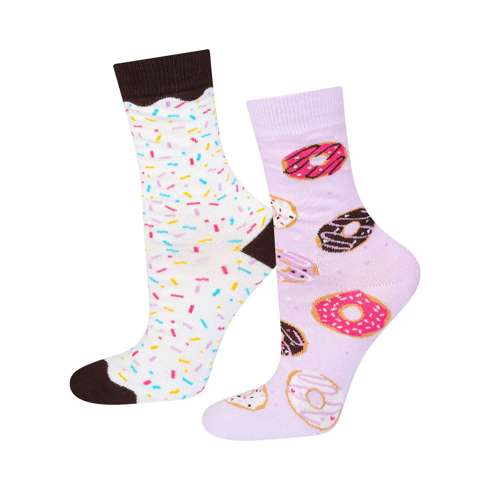 Do you love sweet cakes, rolls and cookies? At Soxo you will find them in the version of socks packed in a box. We have no limits and we create even crazier patterns every day. The sock donuts dripping with icing and colorful sprinkles resemble the original, which can be found on the shelves in the confectionery.