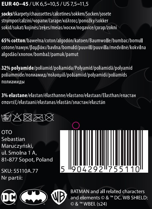 Man - Bat socks are a product that has been perfected in every detail. You can give it to your loved ones, regardless of age, Soxo has no limits, and tasteful socks will make the future owner smile. It's time to get rid of boredom in his wardrobe! No more classic black copies! Choose Bat-socks and enjoy a fashionable accessory that will surely diversify your styling.
