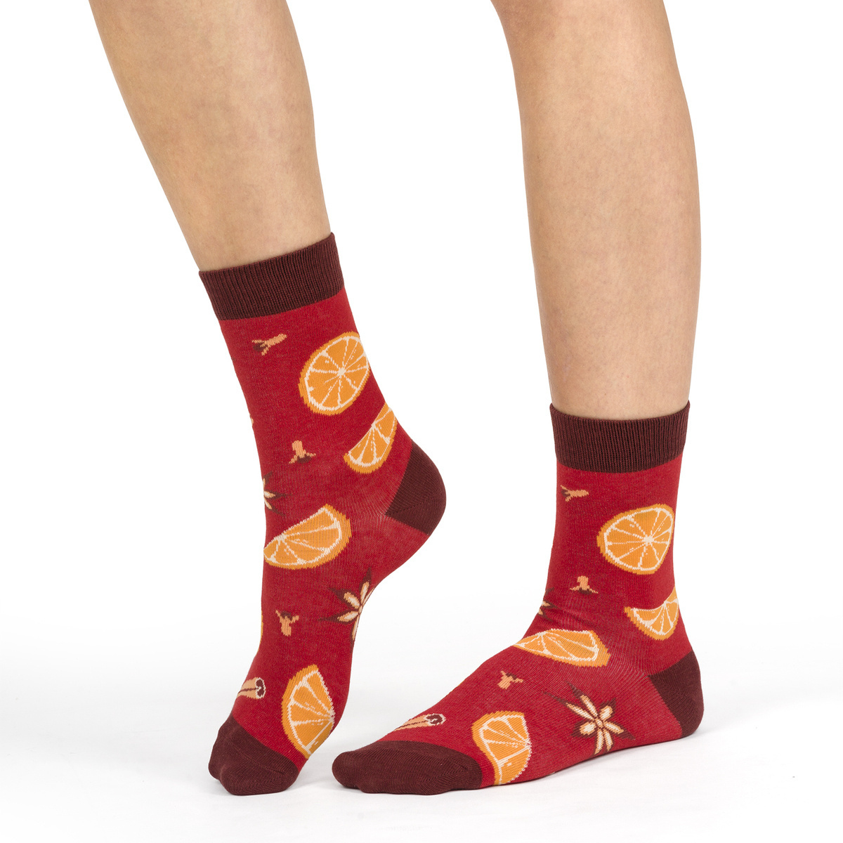 - Christmas mulled socks are a pair of colorful women's socks in red, decorated with the motifs of what can be found in real mulled wine: orange, cloves, anise.