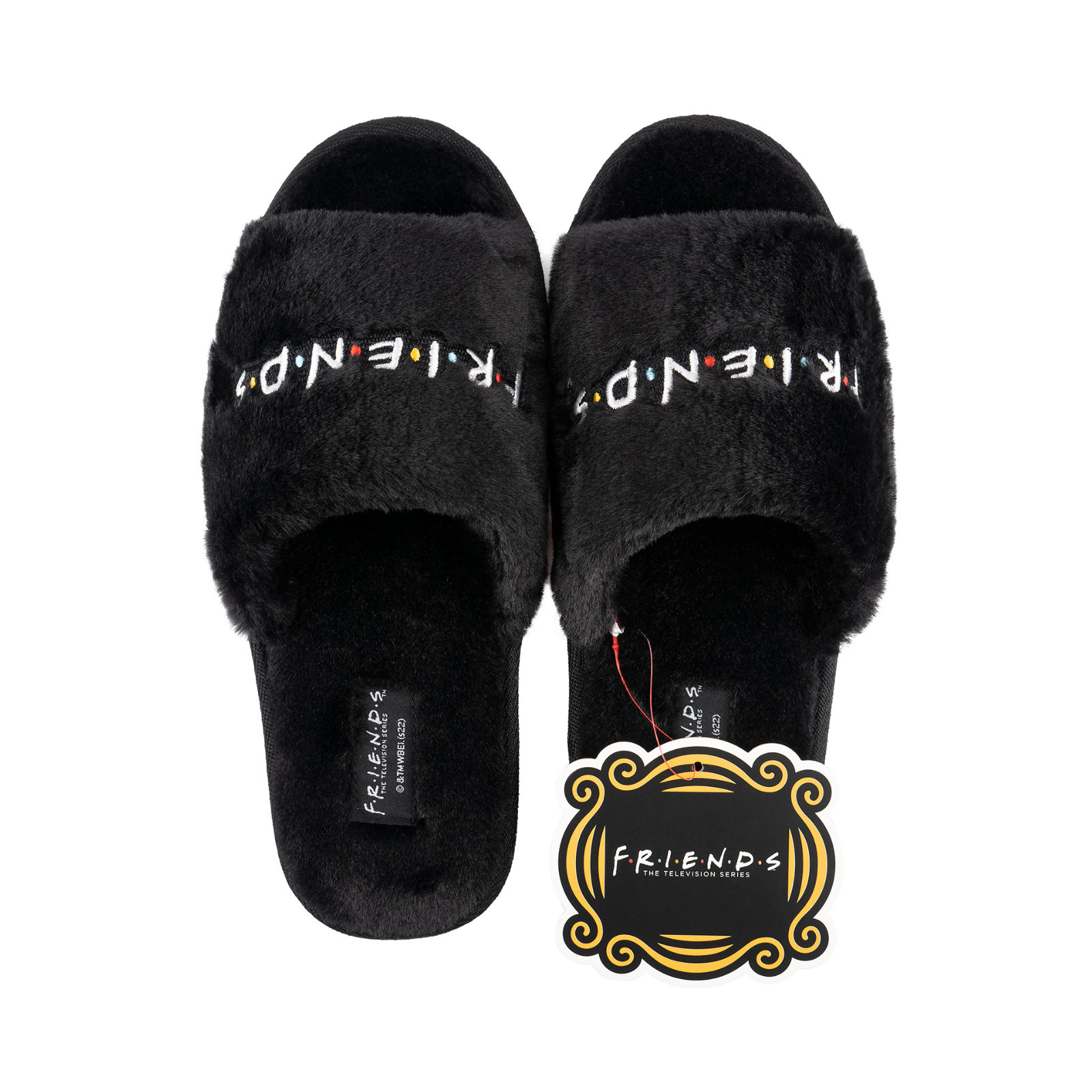 - Fluffy, elegant women's slippers with the theme of the well-known Friends series. The soft interior will wrap your feet and ensure comfort. Take them to Manhattan and enjoy a coffee in your favorite armchair together with the characters of the series.