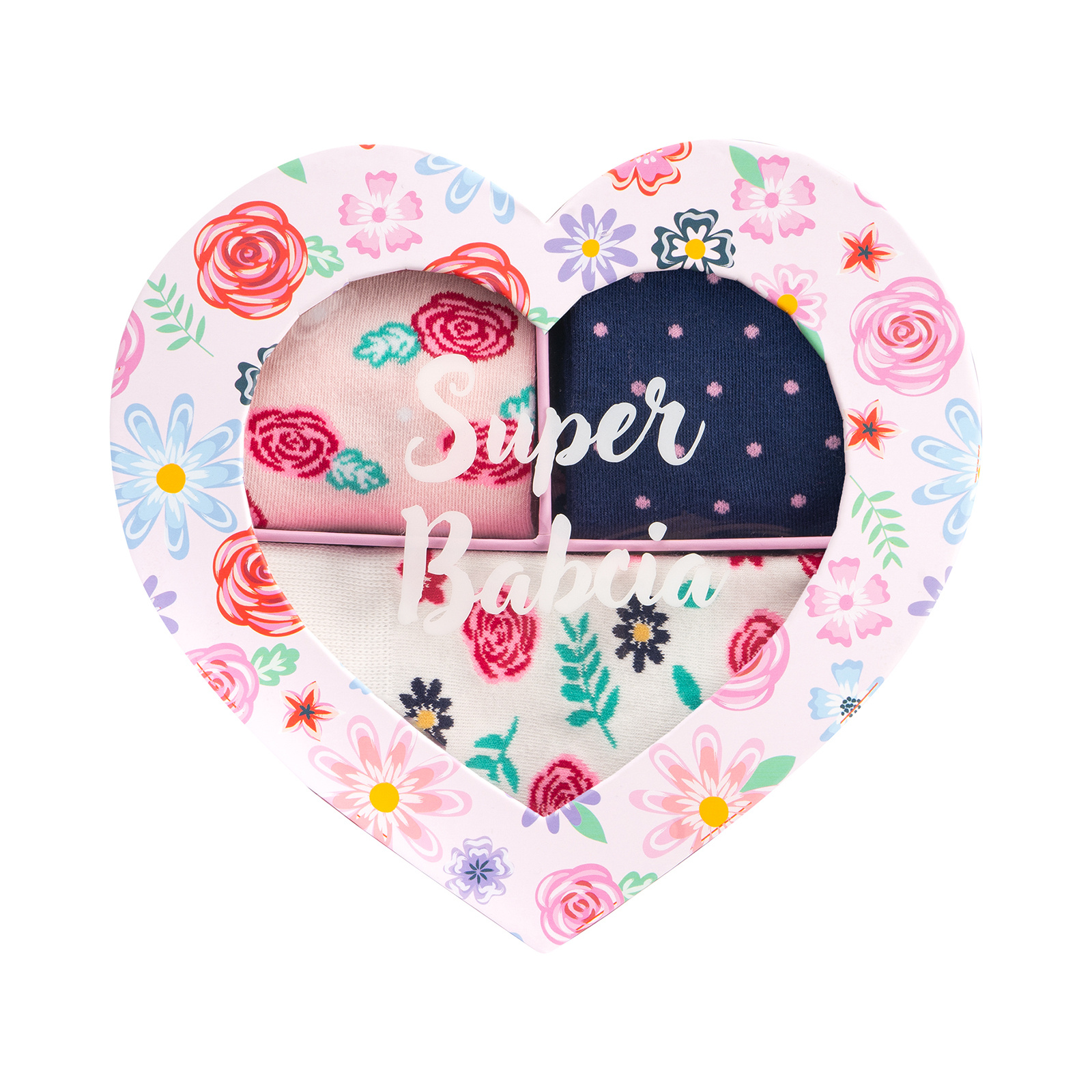 - The set includes two decorative heart-shaped packages with a window, containing sets of 3 pairs of colorful socks each.