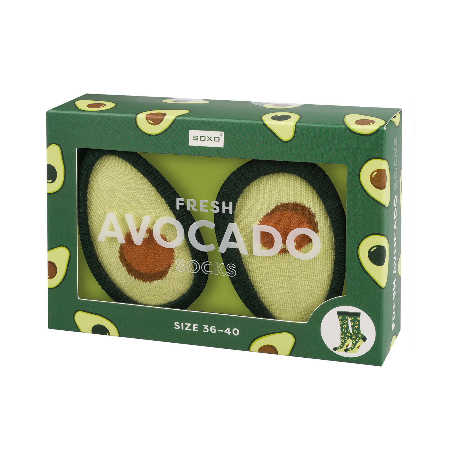 Women's Socks | Men's SOXO | Avocado in a Box | fun gift idea | fun socks for Her | for Him Unisex