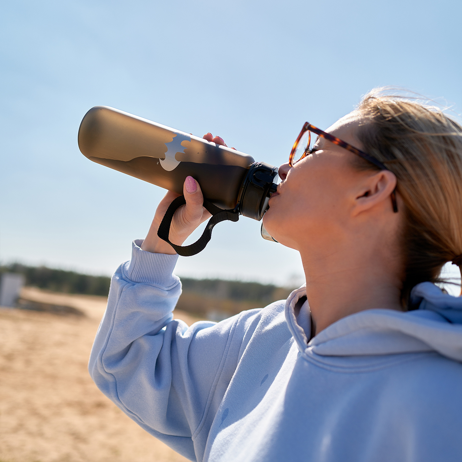 - The bottle has a cartridge into which you can put, for example, fruit, so that your water gets a unique taste!