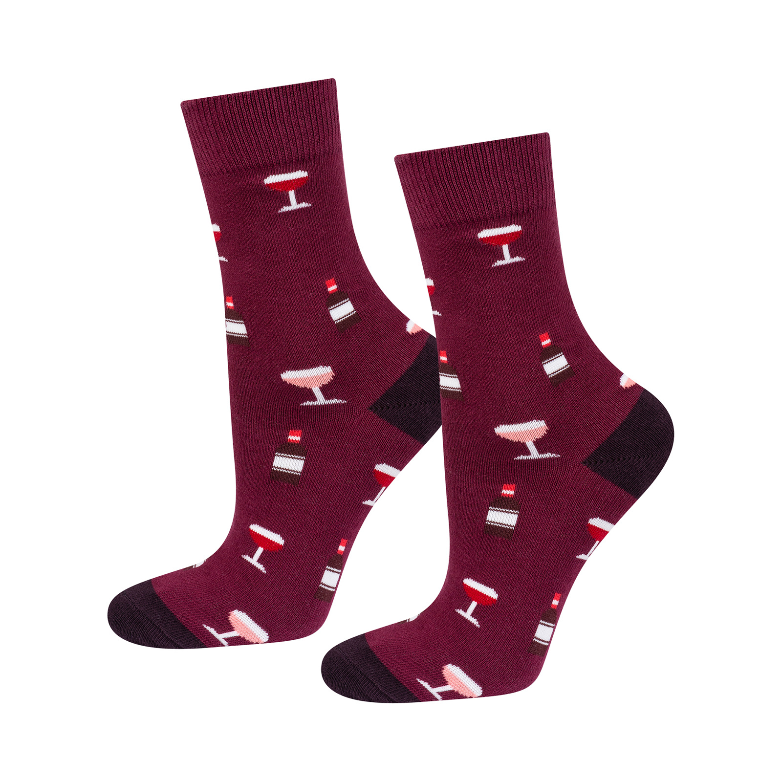 Set of 3x SOXO women's funny Red Wine socks in a gift tube
