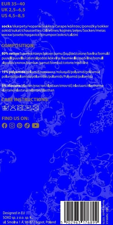 - Cotton SOXO socks combine fashion and wearing comfort - a combination that you will love from the first time you wear it! Colorful socks will make you smile all day long! Feel special and make yourself a gift.