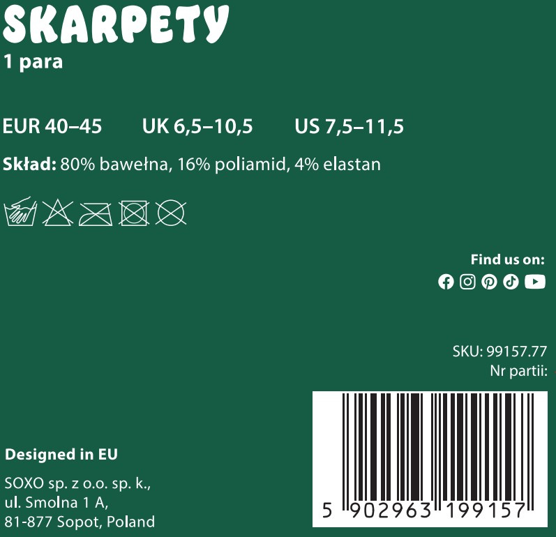 - Has anyone said your outfit is boring? With SOXO socks you will forget about boredom. Every man will like unique socks. Thanks to the high-quality product, you will take care of the comfort of your feet. Wear them to work, school or meeting!