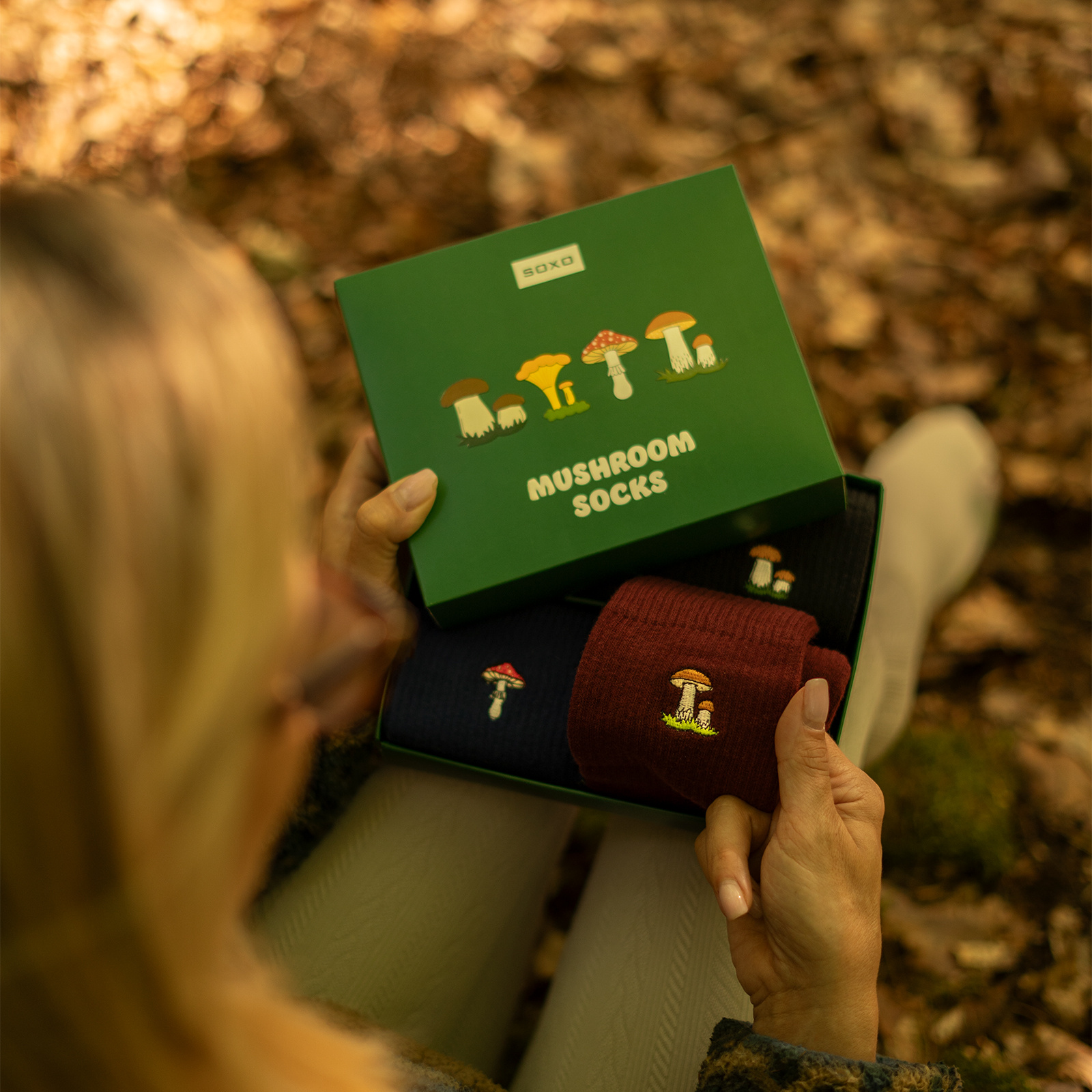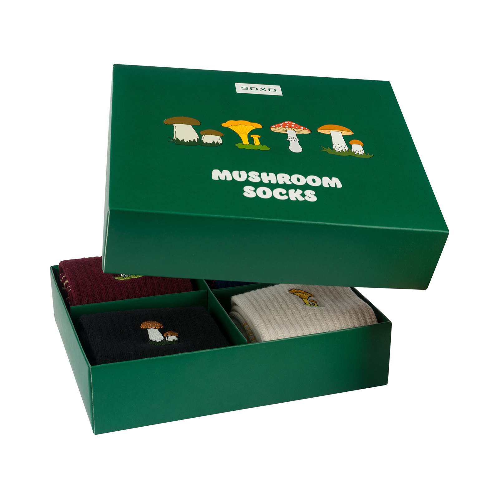 - Fashionable and comfortable Soxo socks with mushrooms are the thing! They are a great gift idea for a girl. Their soft material will provide comfort all day long. Don't delay and order today!