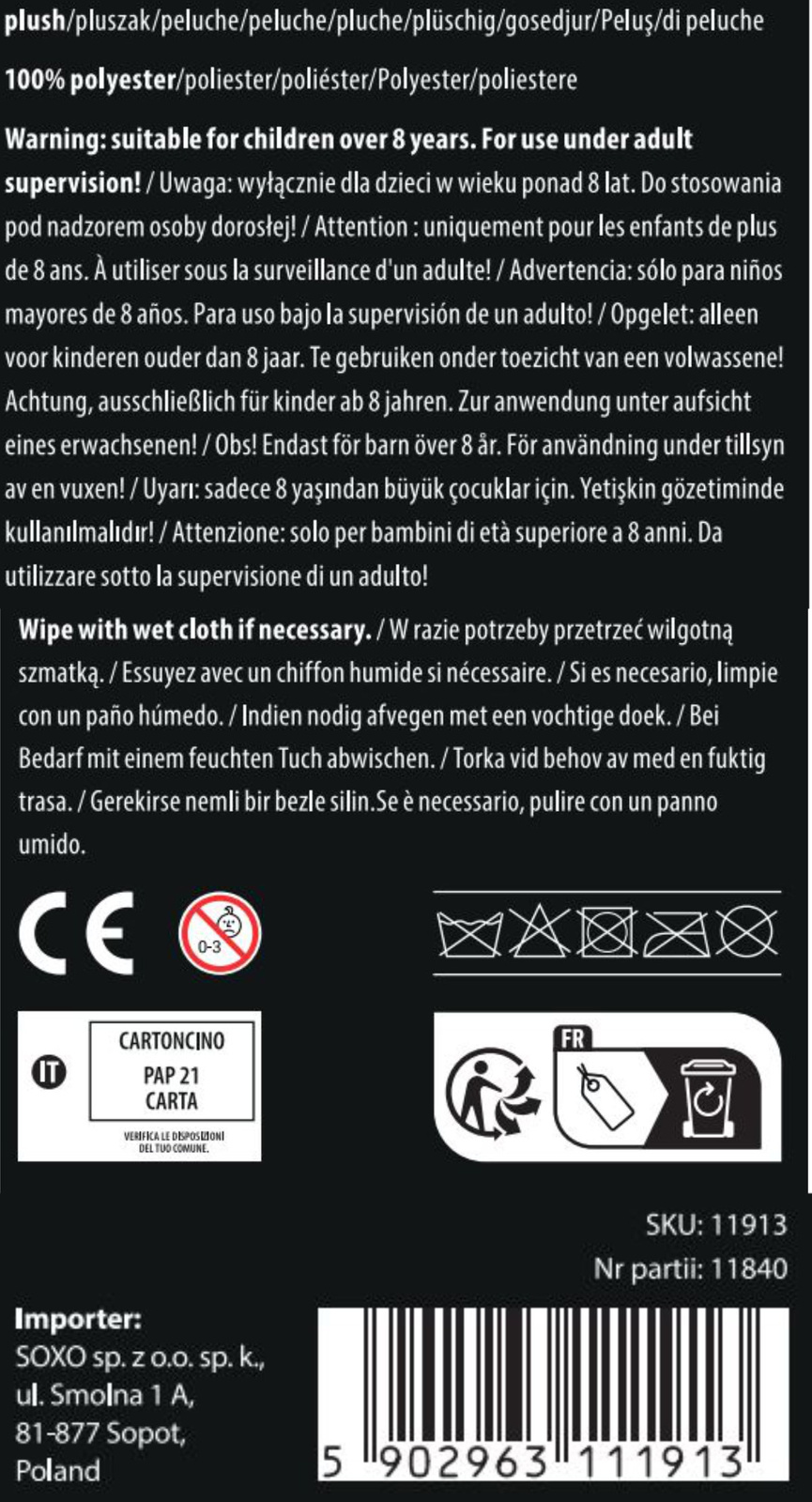 Don't like obvious solutions? Are you an individualist, and standing out from the crowd is your second self? In Soxo you will always find original solutions that will meet your needs, but also surprise you with their original style. With us, the mascot can also not be a simple plain teddy bear! Misaligned eyes, menacing smile, crooked hands and strange things sewn to the body? Gus Fink is the perfect mascot solution that you can gift for Halloween.
