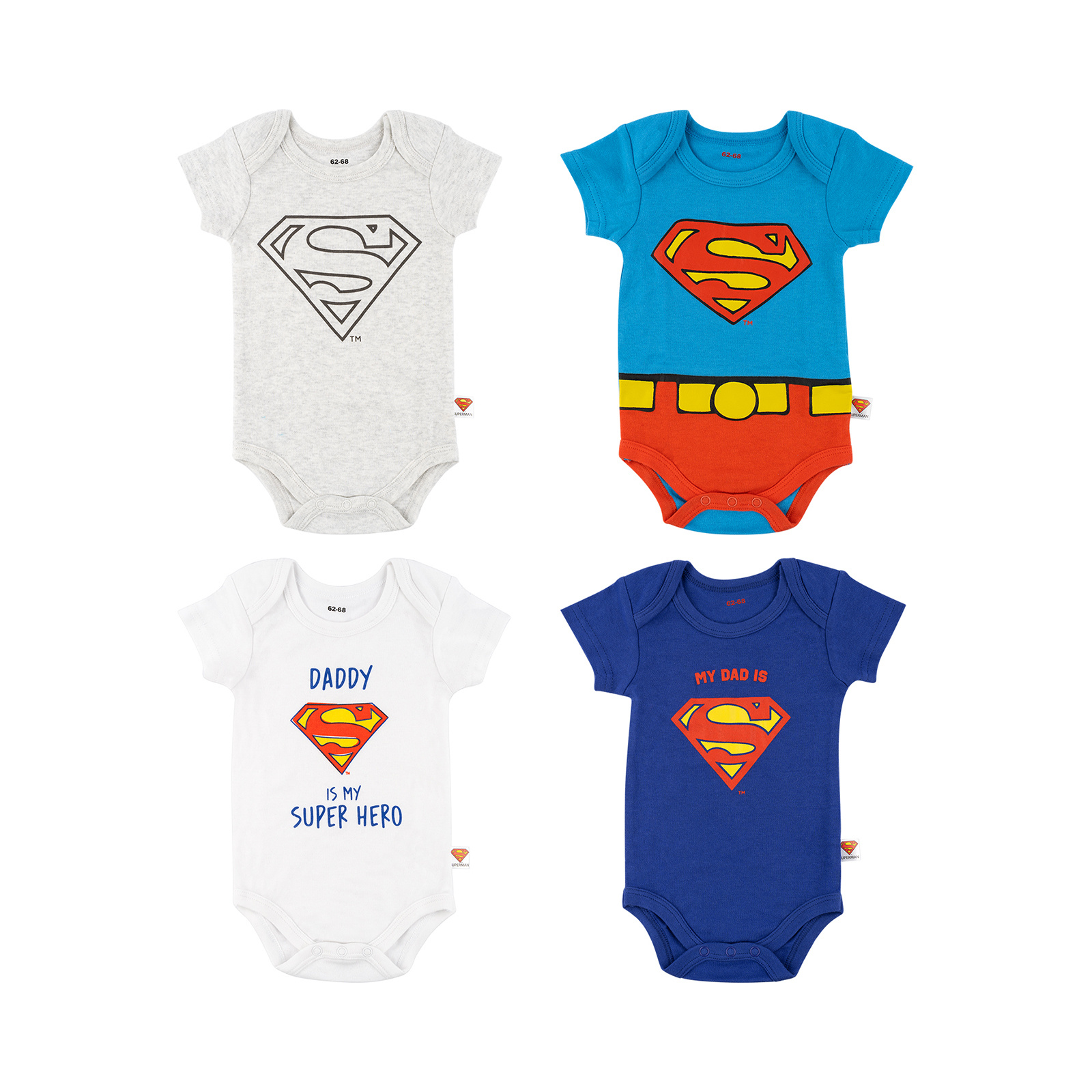 Infant bodysuits with super motif will catch the attention of even the youngest household members. This set of 4x Warner Bros bodysuits is the perfect accessory to keep your toddler and his family in good spirits. The Superman outfit is designed to provide your little one with the utmost comfort. The set is ideal for parents who want to provide their toddler with a peaceful sleep and practicality.
