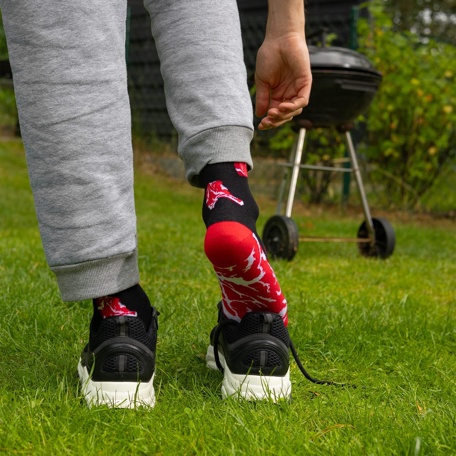 We often ask the question - What gift for a boyfriend on his birthday? For most of us this is a difficult question because men seemingly never need anything. We then reach for the most classic idea which are socks. We usually choose classic, gray and boring copies, which are unlikely to bring joy to the gifted person. Men's steak socks are the perfect solution! And why! An original design with a meat motif will amuse even the biggest tough guy, improve the mood and make it hard to pass by these socks indifferently.