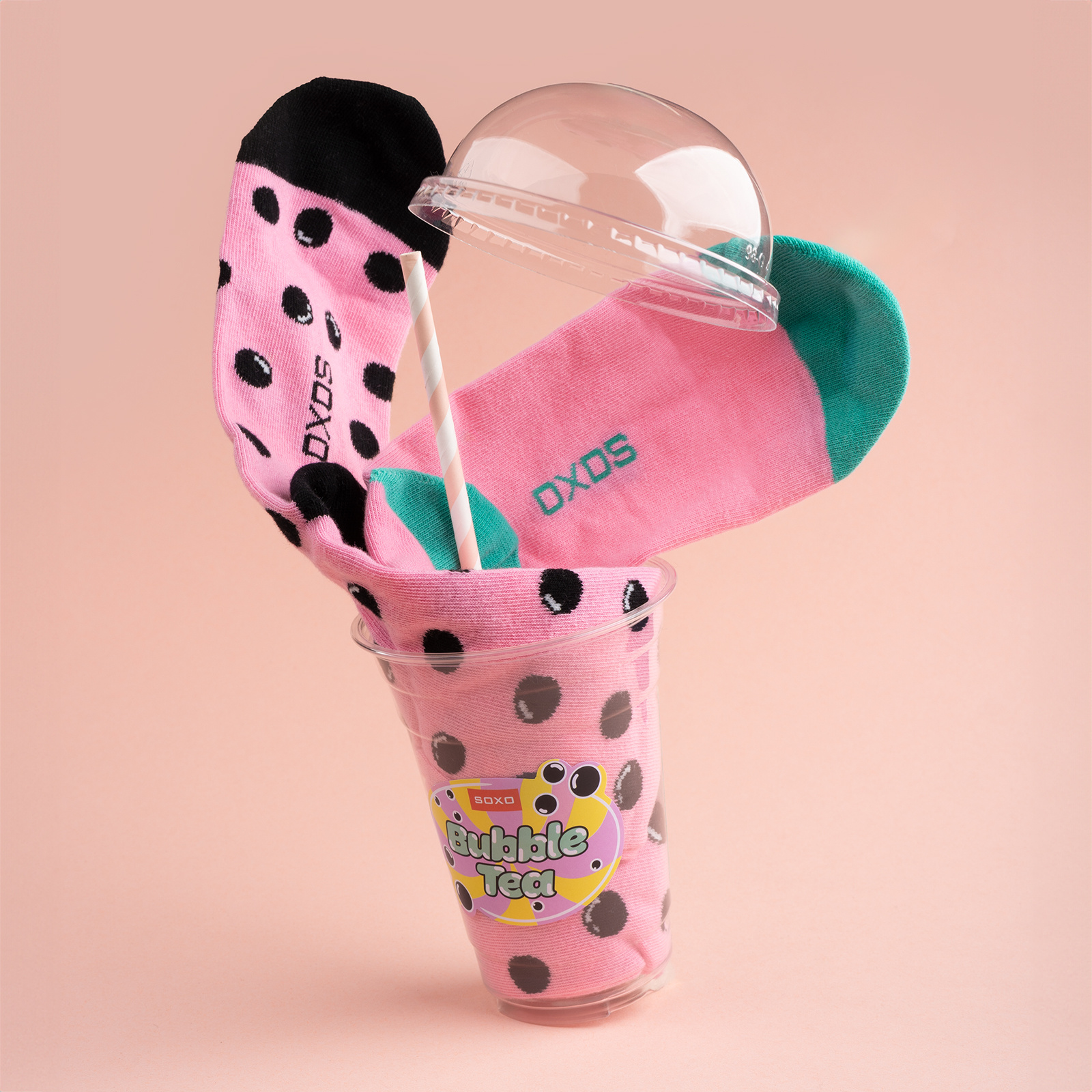 Looking for the perfect gift for Bubble Tea lovers? At Soxo, we make the fondest dreams come true by creating bubble tea socks. They will add charm to your styling and get rid of boredom in your closet. The famous sweet drink, which originated in Taiwan, is an elixir for improving the mood and indulging in this unusual tea. Colorful tea socks with sweet caviar will go well with any of your styling, and most importantly, will fit your feet.
