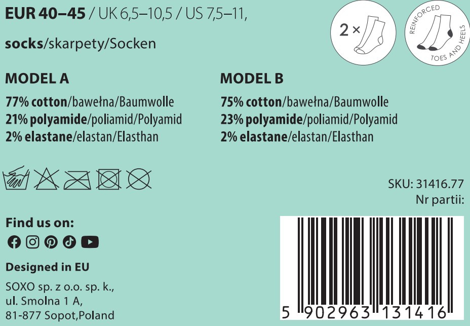 - The selection of the right material ensures the flexibility and comfort of the socks