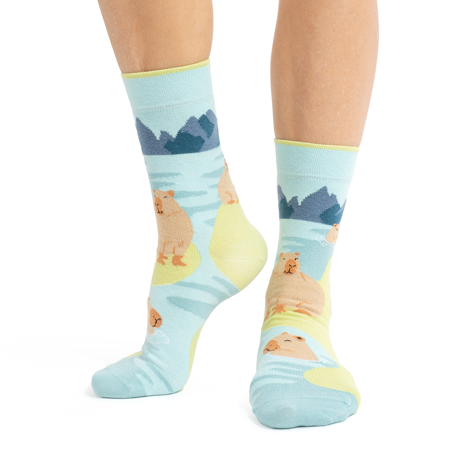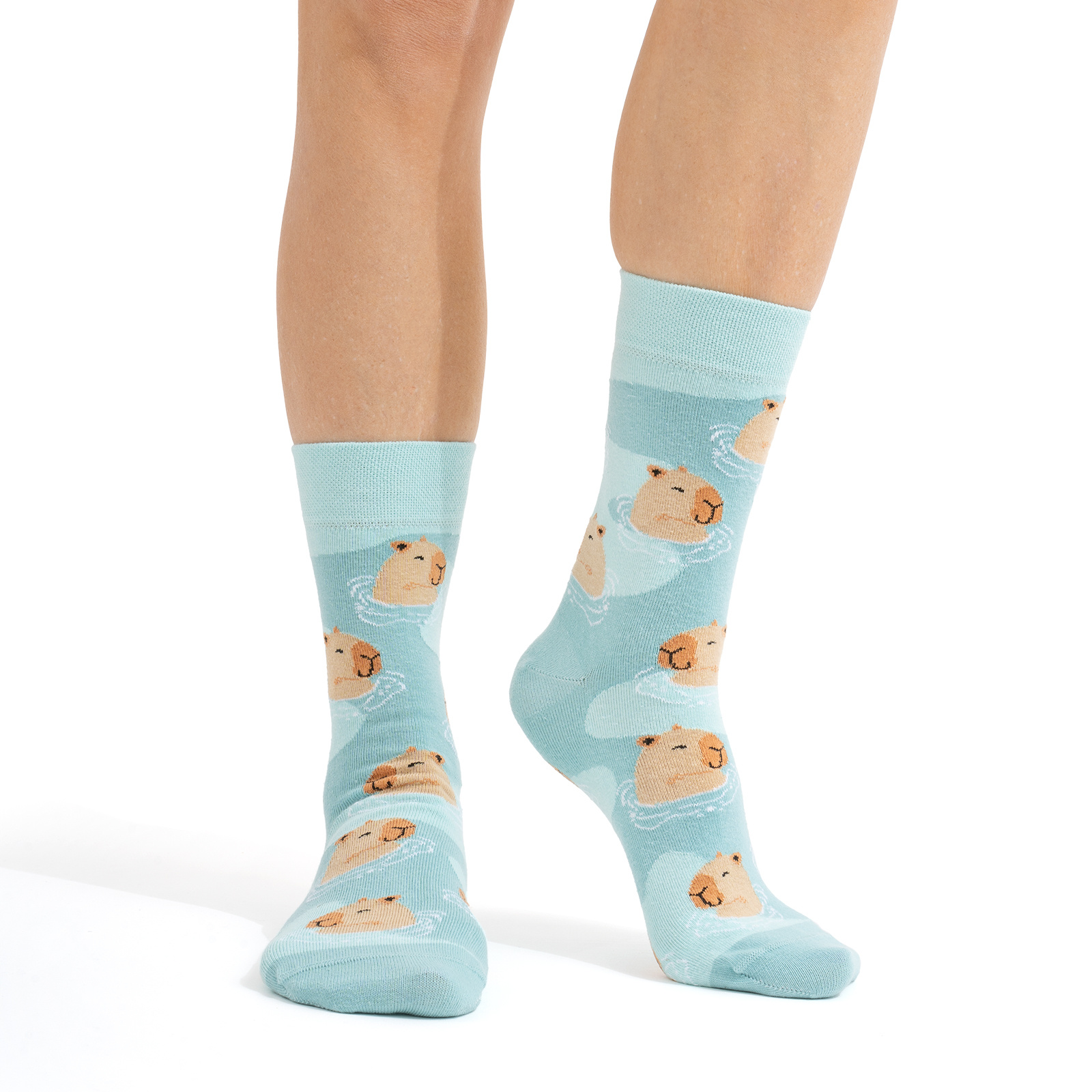 Socks with a motif of capybara in the water are not only fun socks, but also a cheerful gift idea. This model was prepared for lovers of unique designs. Don't be afraid to experiment and play with fashion. Our socks are sure to attract attention and get rid of boredom from your closet.