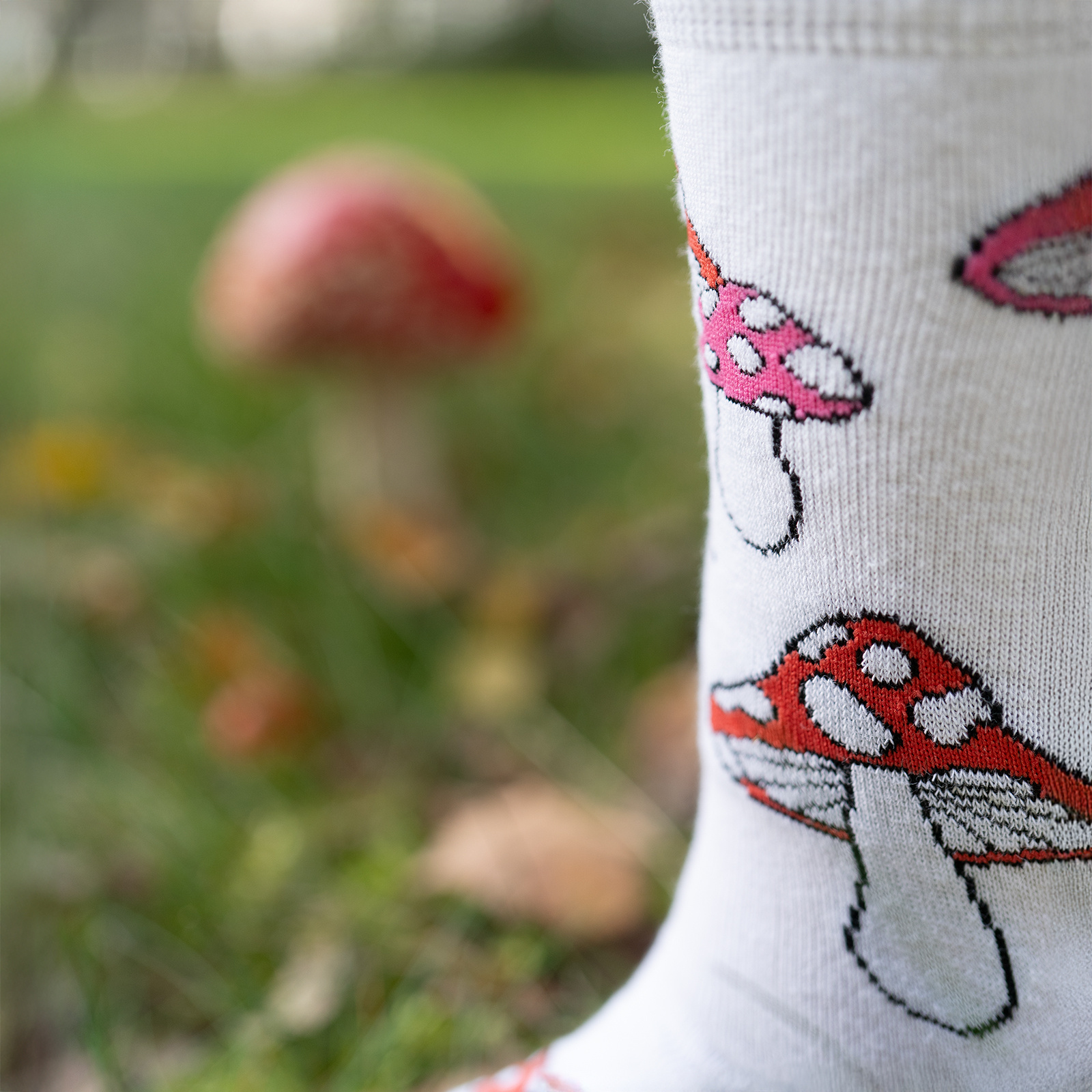 - Socks with a mushroom motif will transport you to a world of fantasy and relaxation.Colorful socks with a mushroom motif are ideal for a gift, which are additionally wrapped in original packaging. Made of good quality material they will provide comfort.