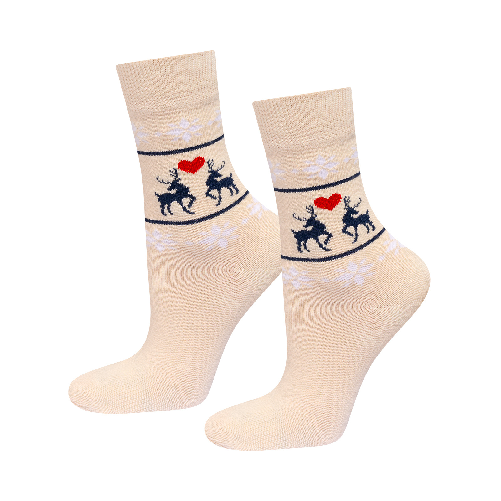 Socks with Christmas motifs, such as reindeer, Christmas trees, snowflakes, or Santa Claus, add magic and a cheerful atmosphere to the winter days, bringing a bit of joy to every outfit. Such a gift will not only bring a smile to the recipient's face but also wrap her feet in warmth and comfort on cold winter evenings.