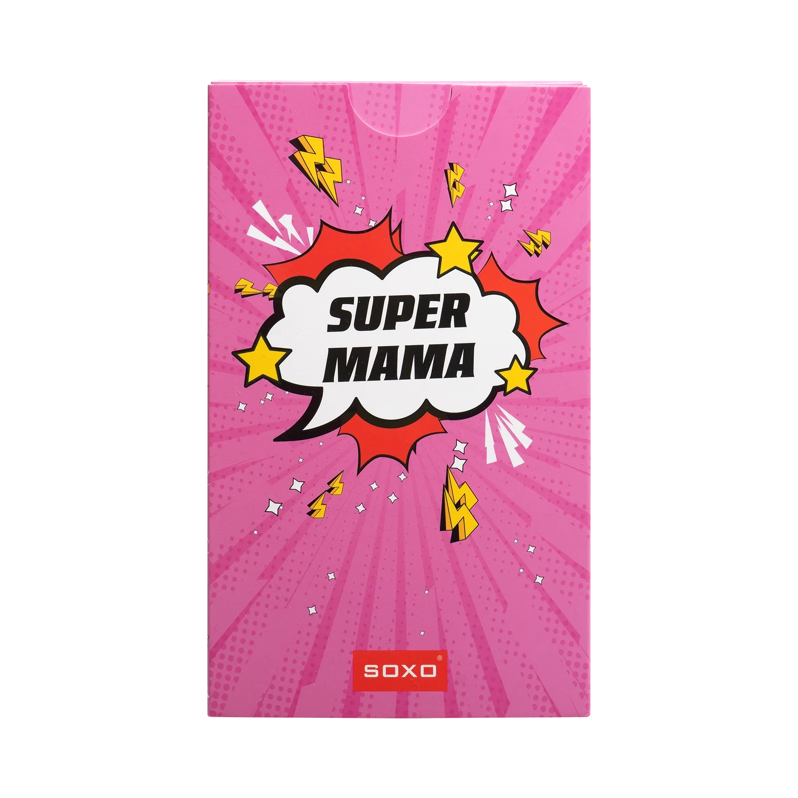 Cheerful socks with the inscription Super Mama are the perfect gadget that you can give as a gift for Mother's Day. Comfortable and funny socks are a fashionable addition to your styling.