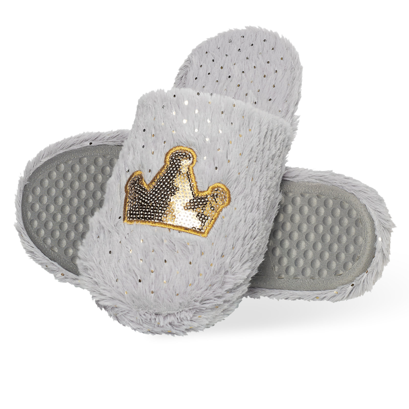 Grau Damen Hausschuhe SOXO mit einer Krone und harte Sohle TPR