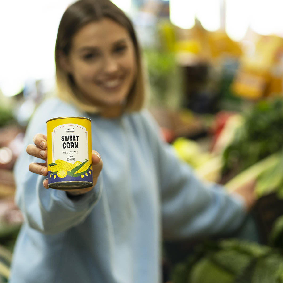 1 Paar von lustigen Socken mit Sweetcornsmotiv in einzigartiger Verpackung | Damensocken | SOXO