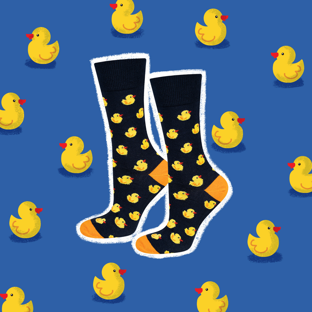 - Duckling-Socken sind perfekt für den Mann, der sich nicht scheut, über die üblichen Standards hinauszugehen. Denn wer sagt, dass ein Mann nur in schwarzen Socken herumlaufen muss? Manchmal muss man einfach loslassen! Ob zur Alltagsjeans oder für die Arbeit, sie ziehen alle Blicke auf sich und bringen Ihre Freunde zum Lächeln. Machen Sie sich selbst und anderen eine Freude!