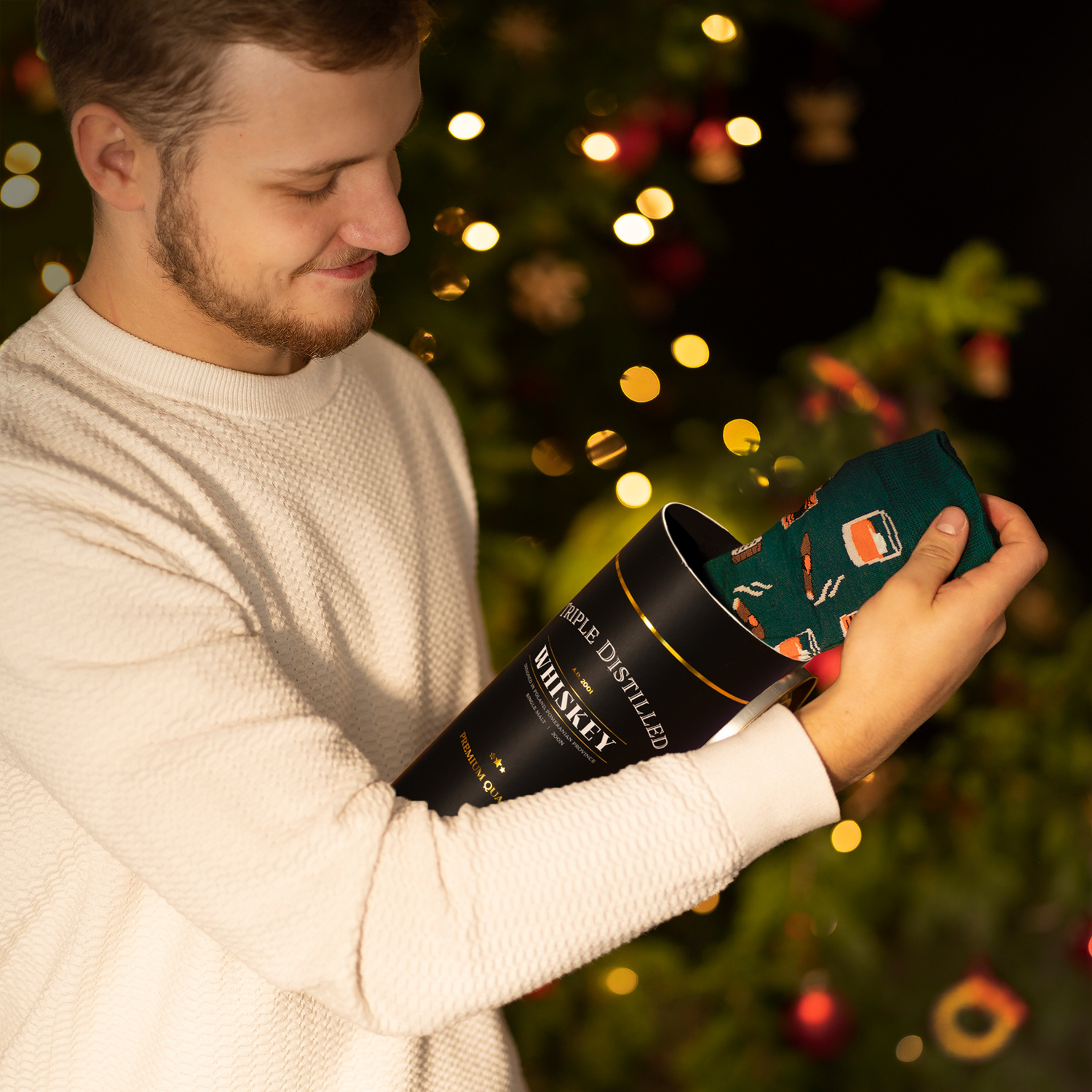 3 Paar von lustigen Socken mit Whiskymotiv in einzigartiger Verpackung | Herrensocken | SOXO
