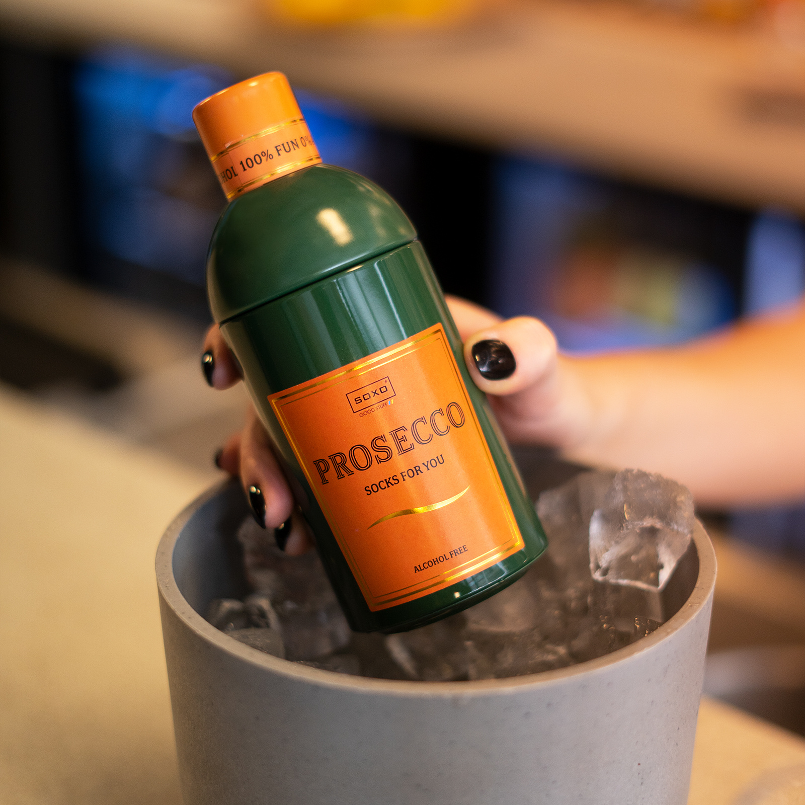 1 Paar von lustigen Socken mit Proseccomotiv einzigartiger Verpackung| Damensocken | SOXO