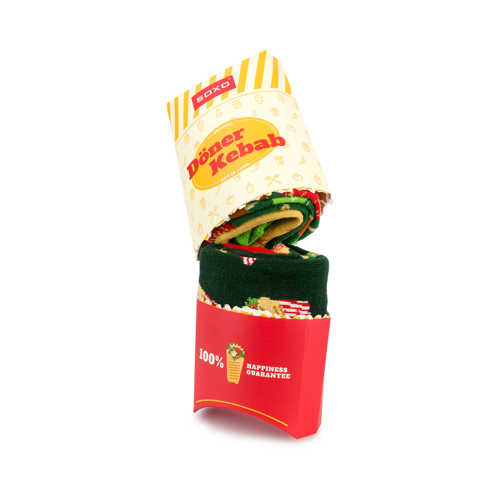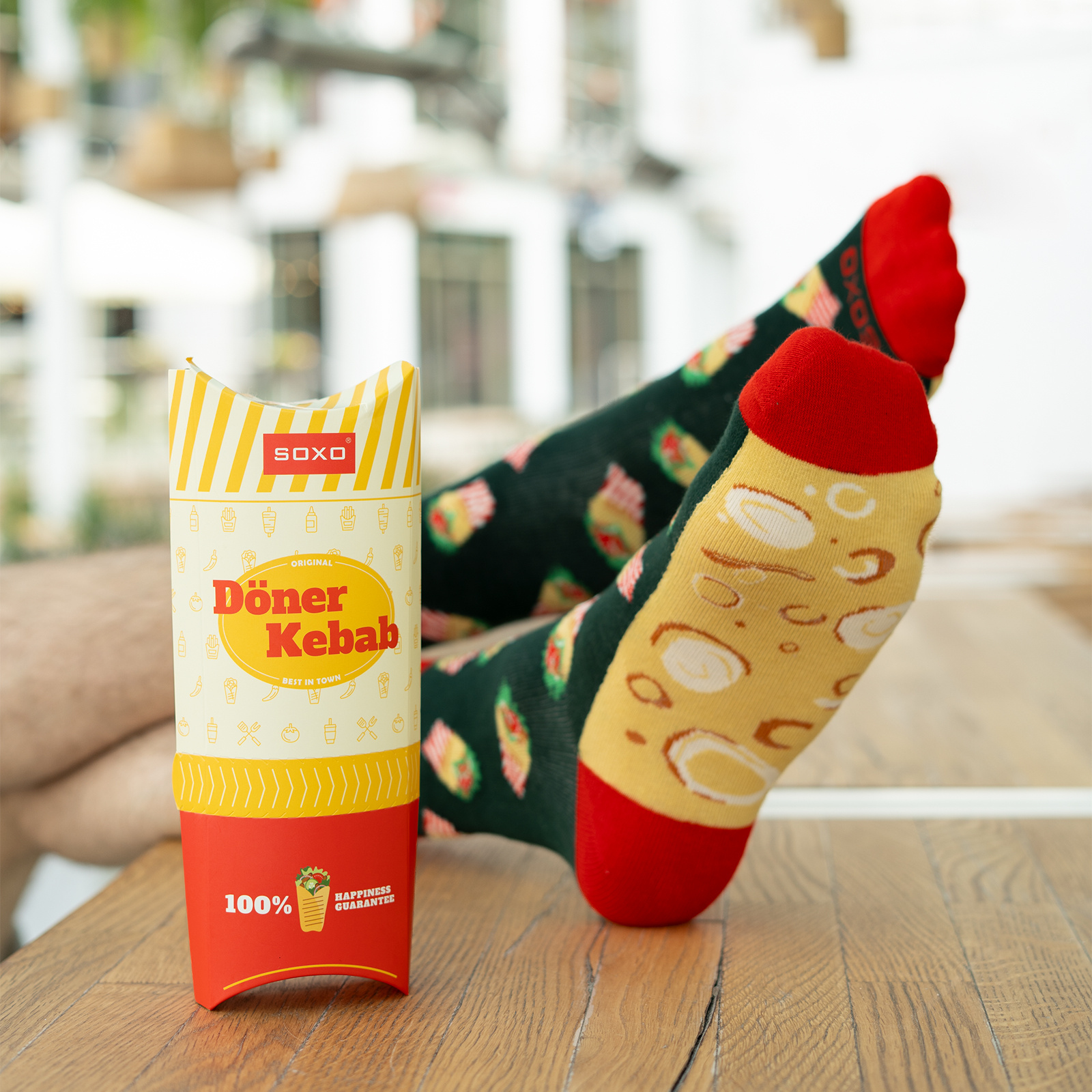 - Fröhliche Socken mit Döner-Motiv sind das Richtige! Bequeme, elegante Stücke sorgen für Ihr Styling und gewährleisten einen hohen Tragekomfort. SOXO Socken sind die perfekte Kombination aus Vergnügen und Funktionalität, die Sie schon beim ersten Anziehen