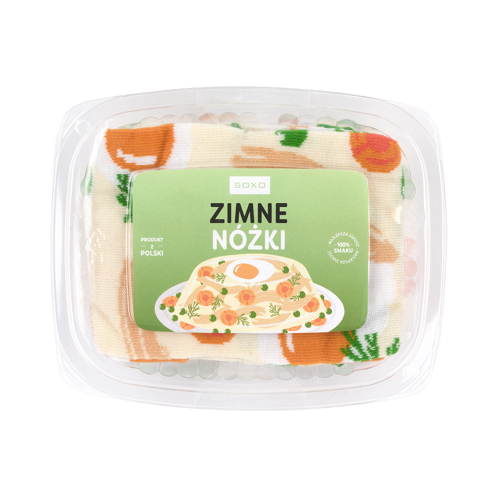 - Lustige Socken sind mit Gelee verziert. Ihre Farbe passt gut zu Ihrer Garderobe.