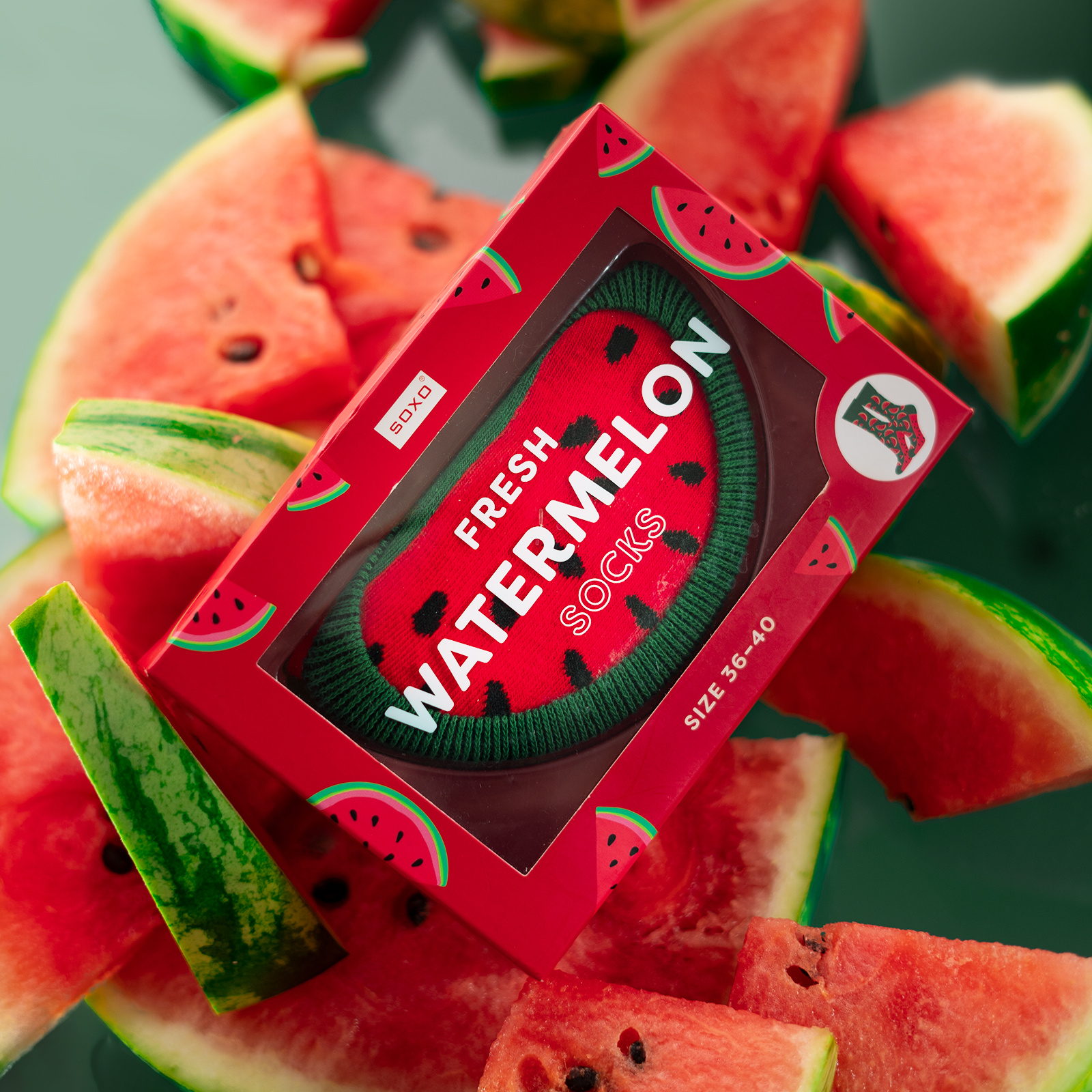 1 Paar von lustigen Socken mit Wassermelonemotiv in einzigartiger Verpackung | Damensocken | SOXO
