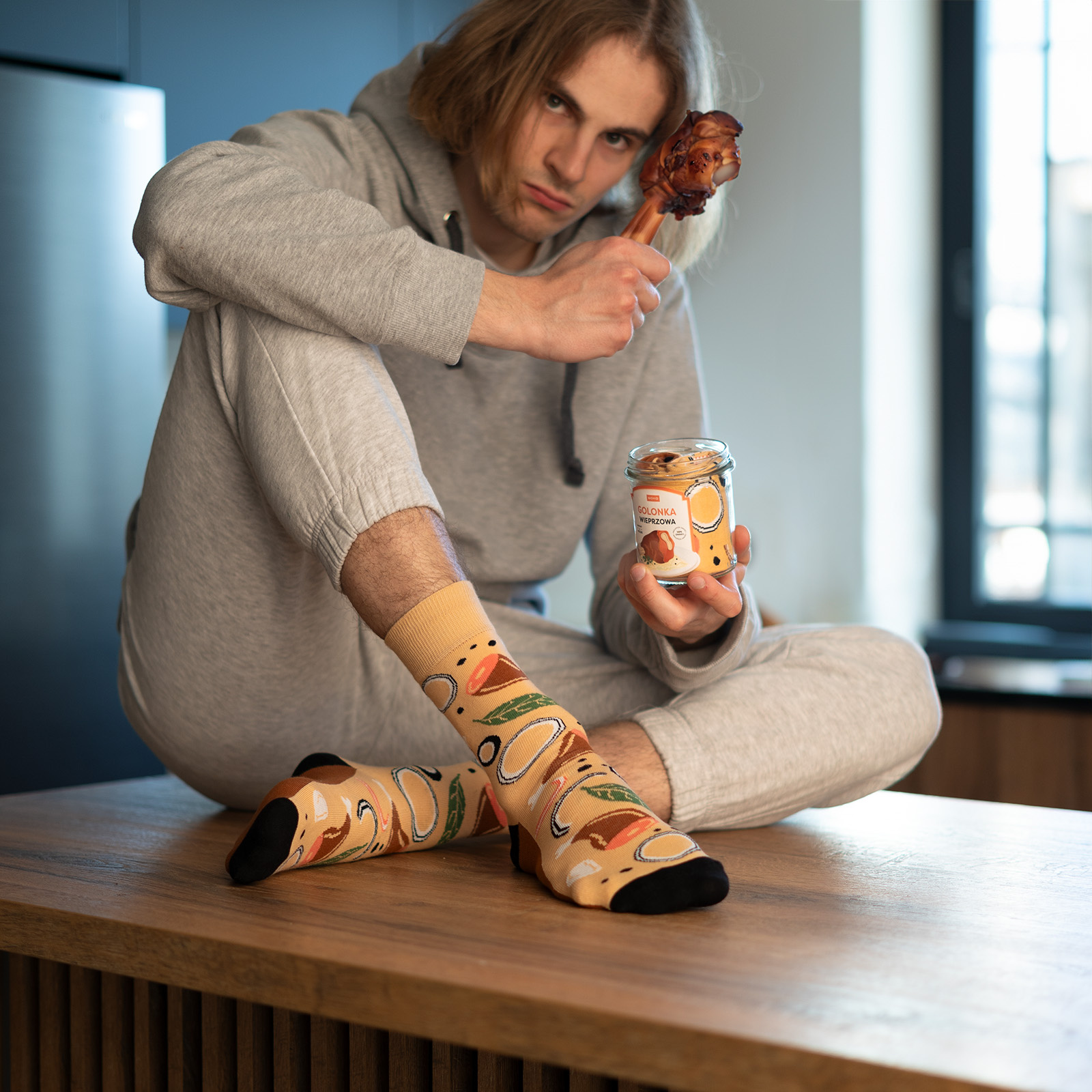 Bunte SOXO GOOD STUFF Herrensocken mit lustigem Baumwollhonig im Glas