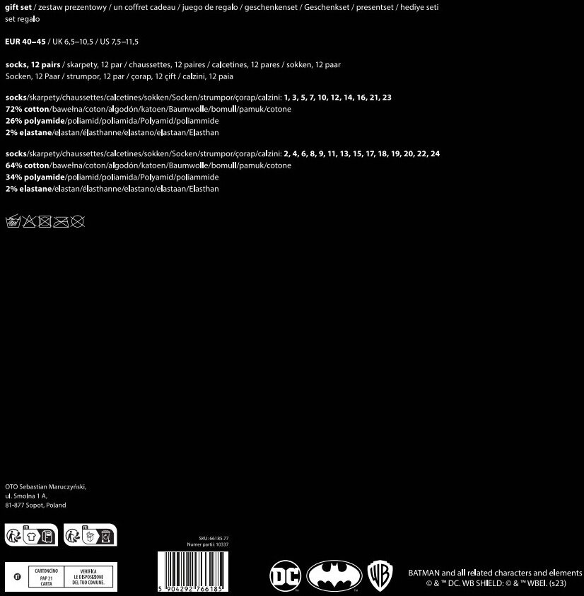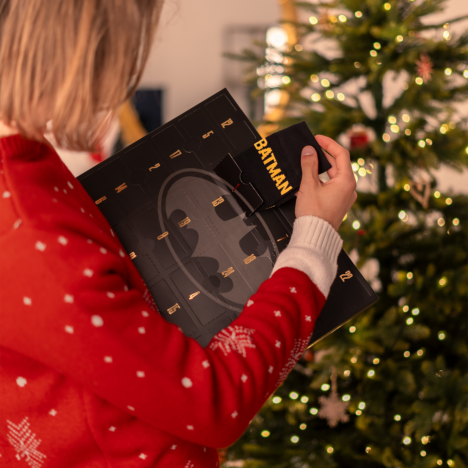 - Ein Set mit 12 Paar bunten Batman-Socken in Form eines Adventskalenders. Sie sind aus hochwertigem Material gefertigt und sorgen für Komfort. Sie können sie für Santa oder Weihnachten verschenken. Die überraschende Verpackung und die Socken sind eine perf