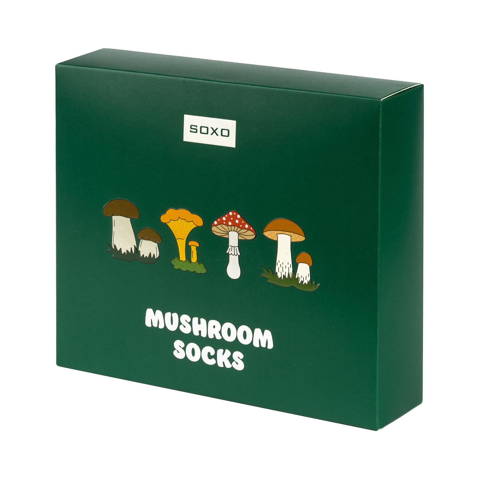 4 Paar von lustigen Socken mit Pilzmotiv in einzigartiger Verpackung | Damensocken | SOXO