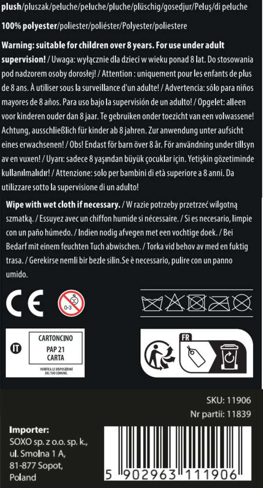 Mögen Sie keine offensichtlichen Lösungen? Sind Sie ein Individualist, der sich gerne von der Masse abhebt? Bei Soxo finden Sie immer originelle Lösungen, die Ihren Bedürfnissen entsprechen, aber auch durch ihren originellen Stil überraschen. Bei uns kann ein Maskottchen auch nicht nur ein einfacher Teddybär sein! Verschobene Augen, ein bedrohliches Lächeln, krumme Hände und seltsame Dinge, die auf den Körper genäht sind? Gus Fink ist die perfekte Maskottchen-Lösung für ein Halloween-Geschenk.