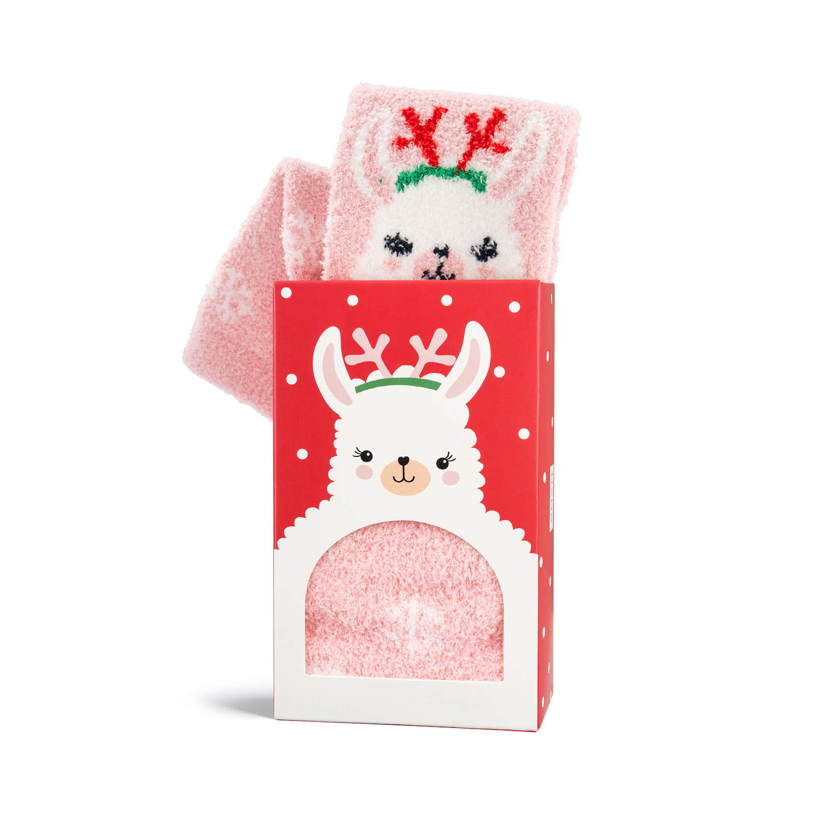 - Die Lama Christmas Socks sind ein Paar bunte Damensocken in einer einzigartigen Verpackung.