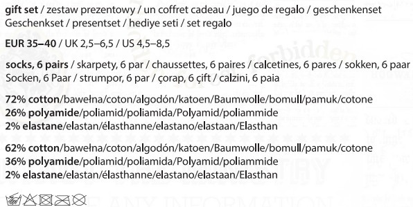 Ein Set von 6 Paar ungewöhnlichen Socken, versteckt in einem Buch! So liest man nicht! Das sind Exemplare für Frauen, die sich nicht scheuen, zu experimentieren und dabei modisch auszusehen. Die fröhlichen Socken mit dem Harry-Potter-Motiv in verschiedenen Ausführungen bringen Schwung in die Sache und vertreiben die Langeweile in Ihrem Kleiderschrank.