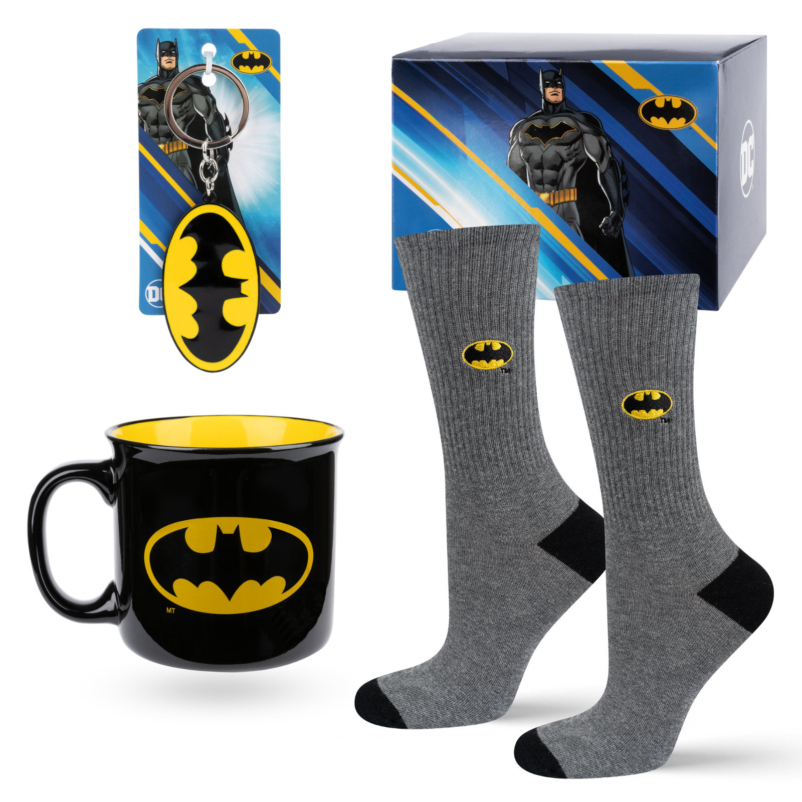 - Kümmern Sie sich um Ihren Mann und wählen Sie das perfekte Batman-Set Sie werden einzigartige Gadgets finden, die jedem gefallen werden! Die Socken, die Tasse und der Schlüsselanhänger sind eine praktische und einzigartige Geschenkidee.