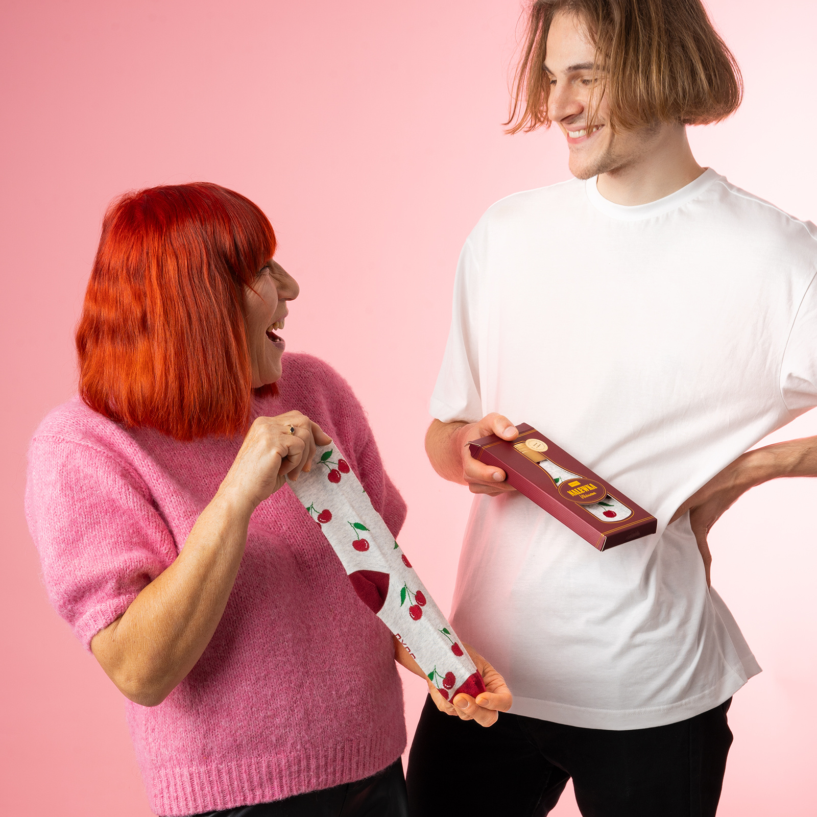 Schöne Socken sind zusätzlich in einer ungewöhnlichen Verpackung verpackt, die eine Flasche Prosecco ist. Dank der Verpackung werden Prosecco-Socken den zukünftigen Besitzer sicherlich überraschen. Sie sind eine tolle Geschenkidee zum Muttertag, Valentinstag, für eine Freundin oder einen Freund. Zeigen Sie Ihre Art zu sein mit Ihrer Kreation, zeigen Sie, dass Sie ein fröhliches Mädchen sind, das gerne Spaß hat und anderen ein Lächeln schenkt.